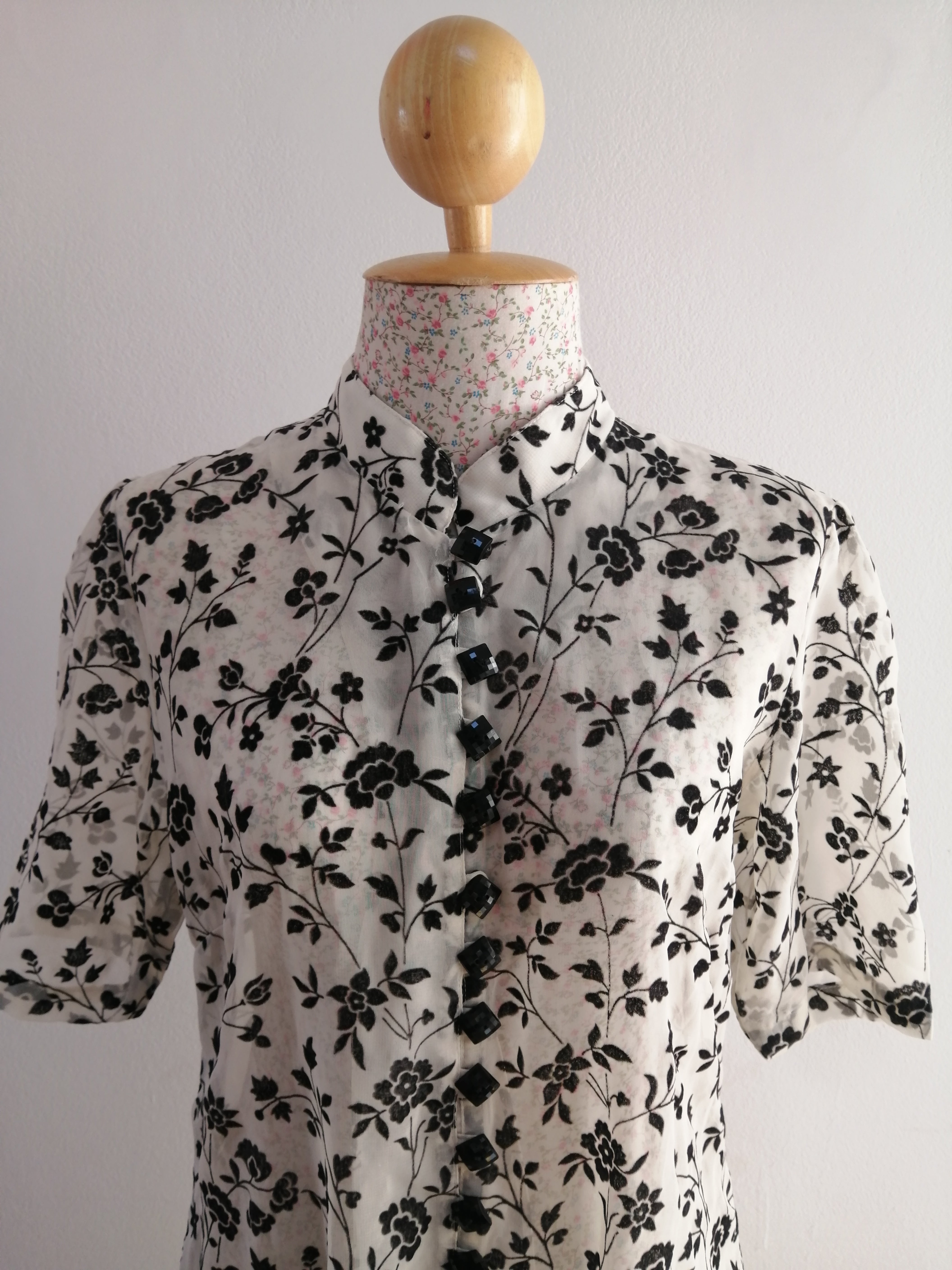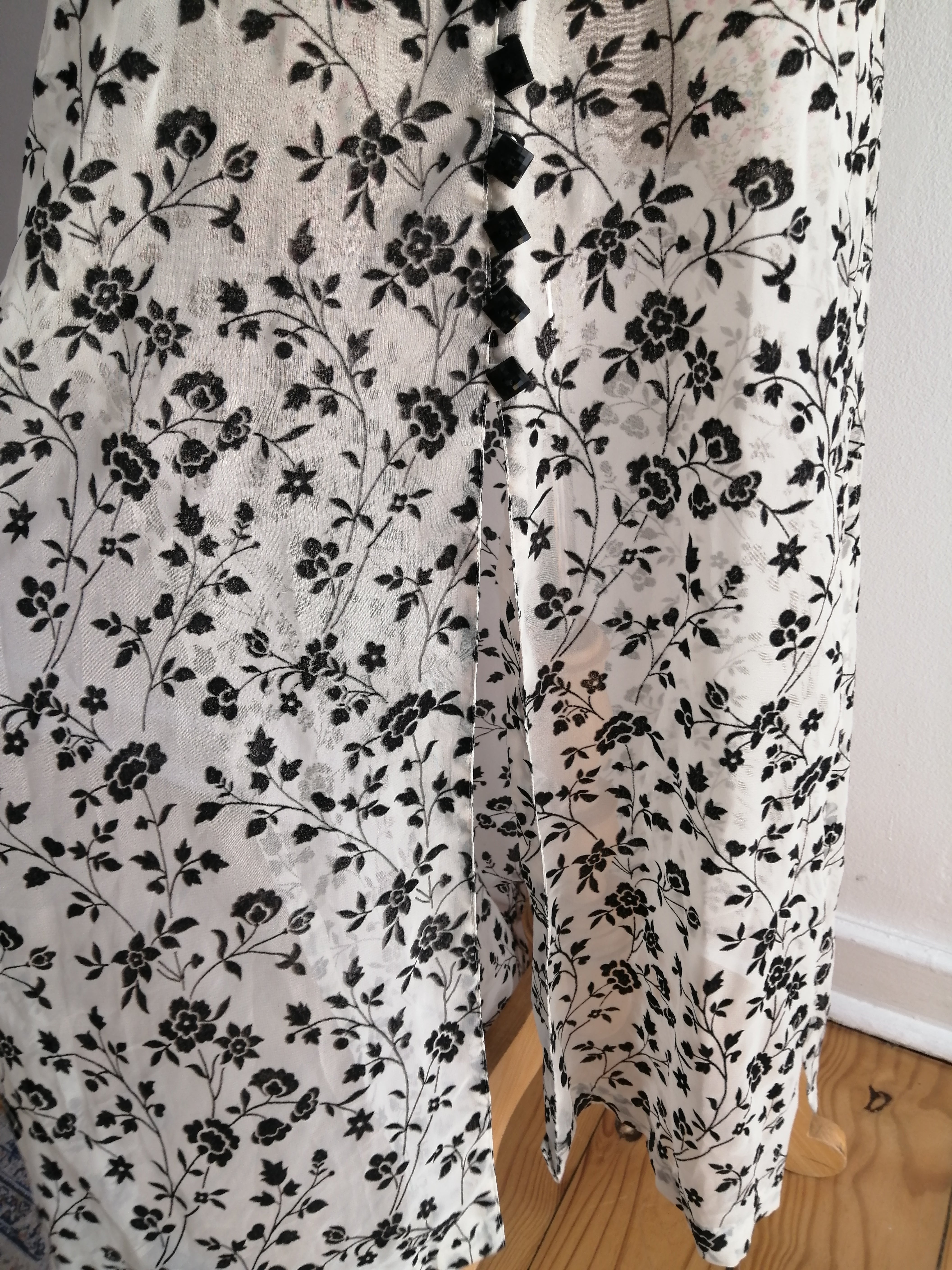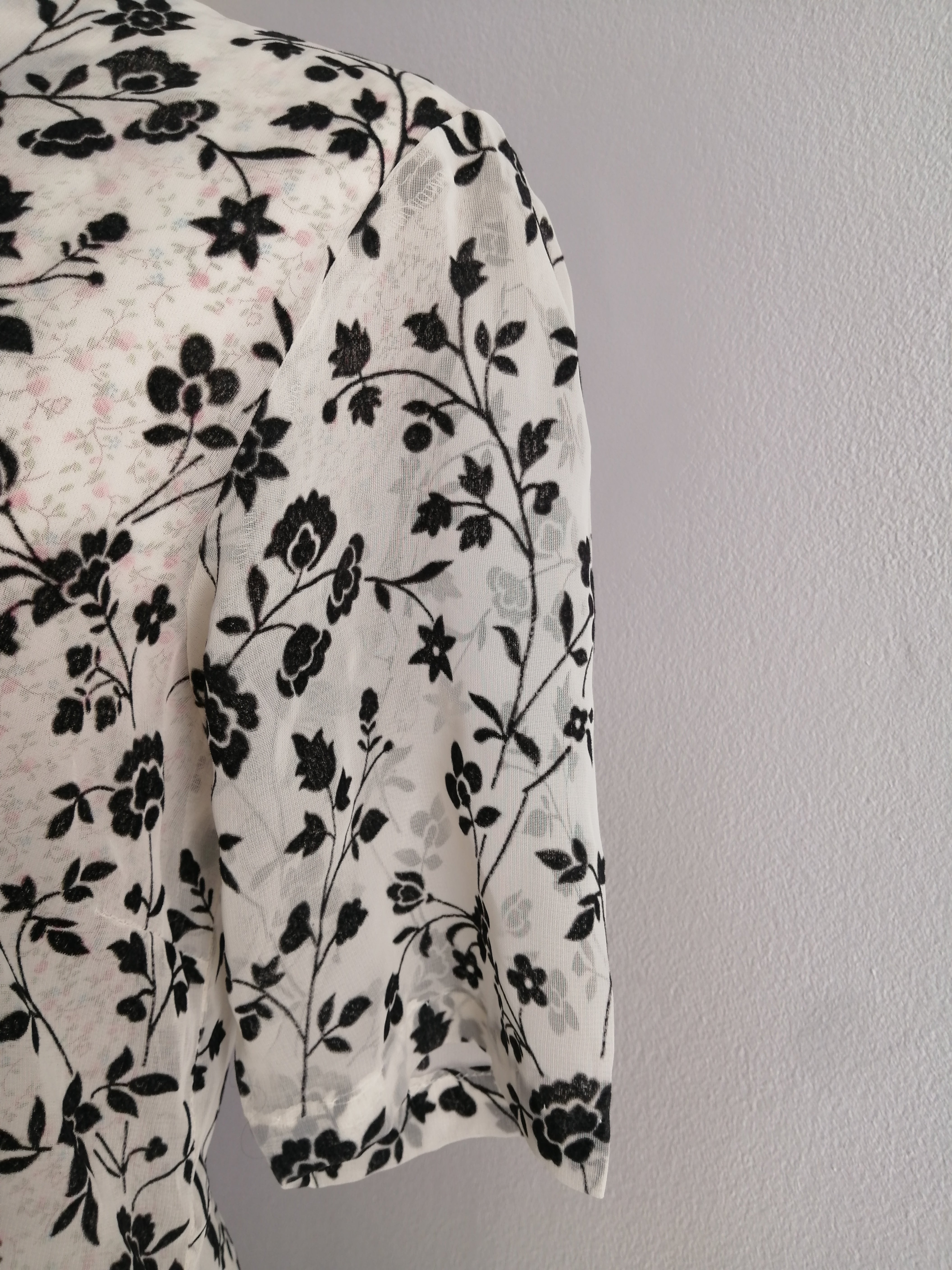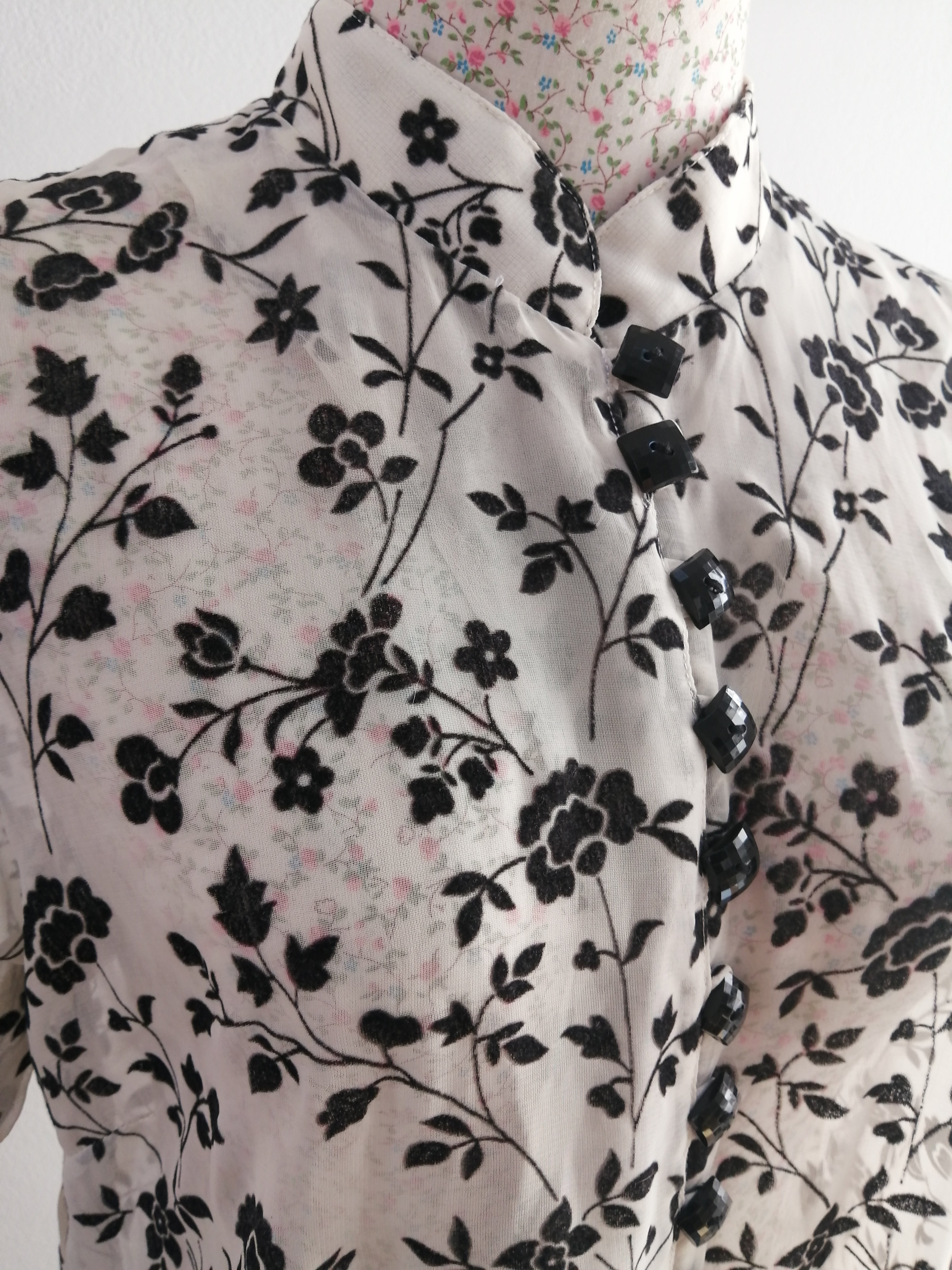 Product Fabric/Material: Sheer polyester with black embossed florals