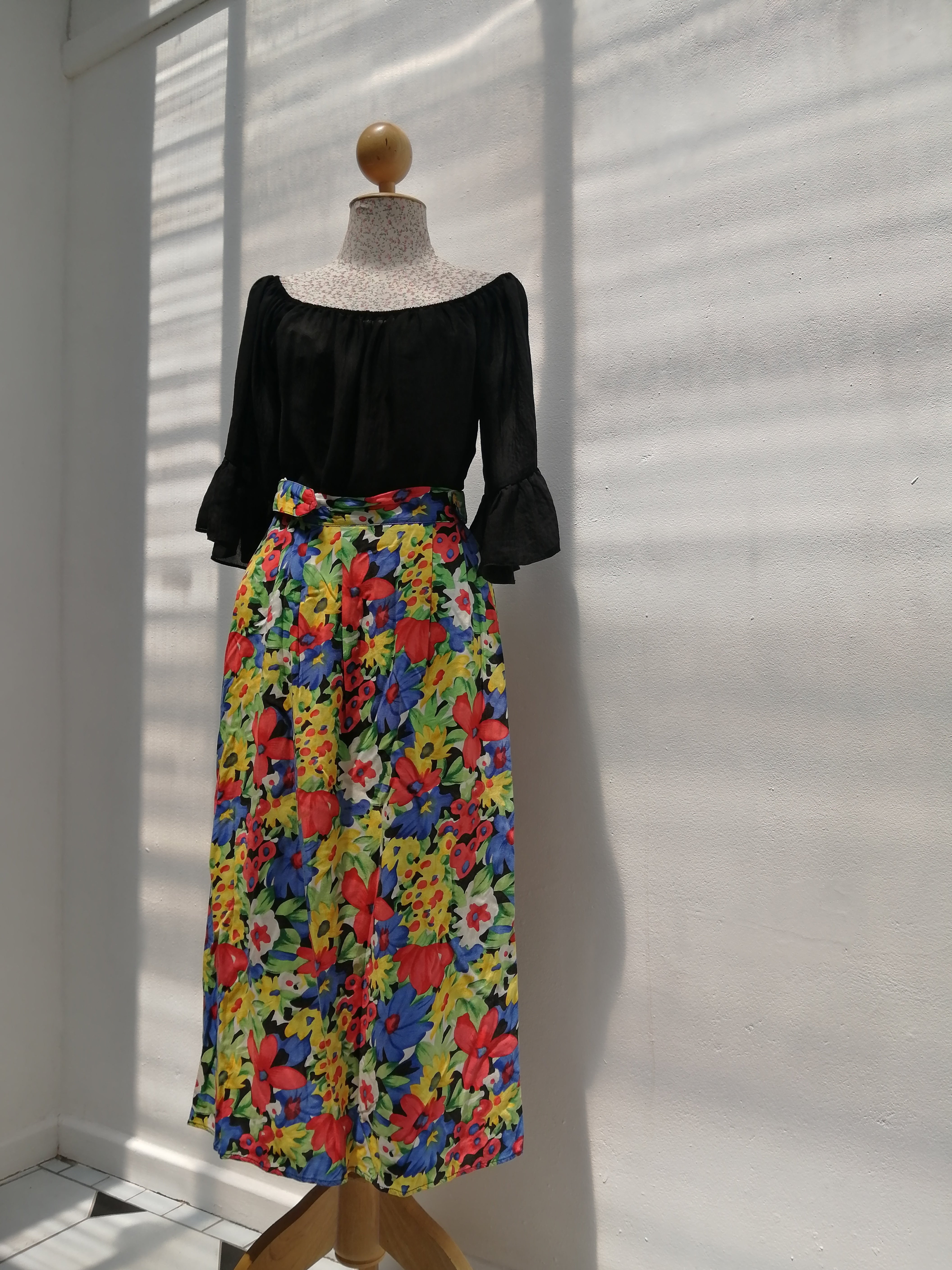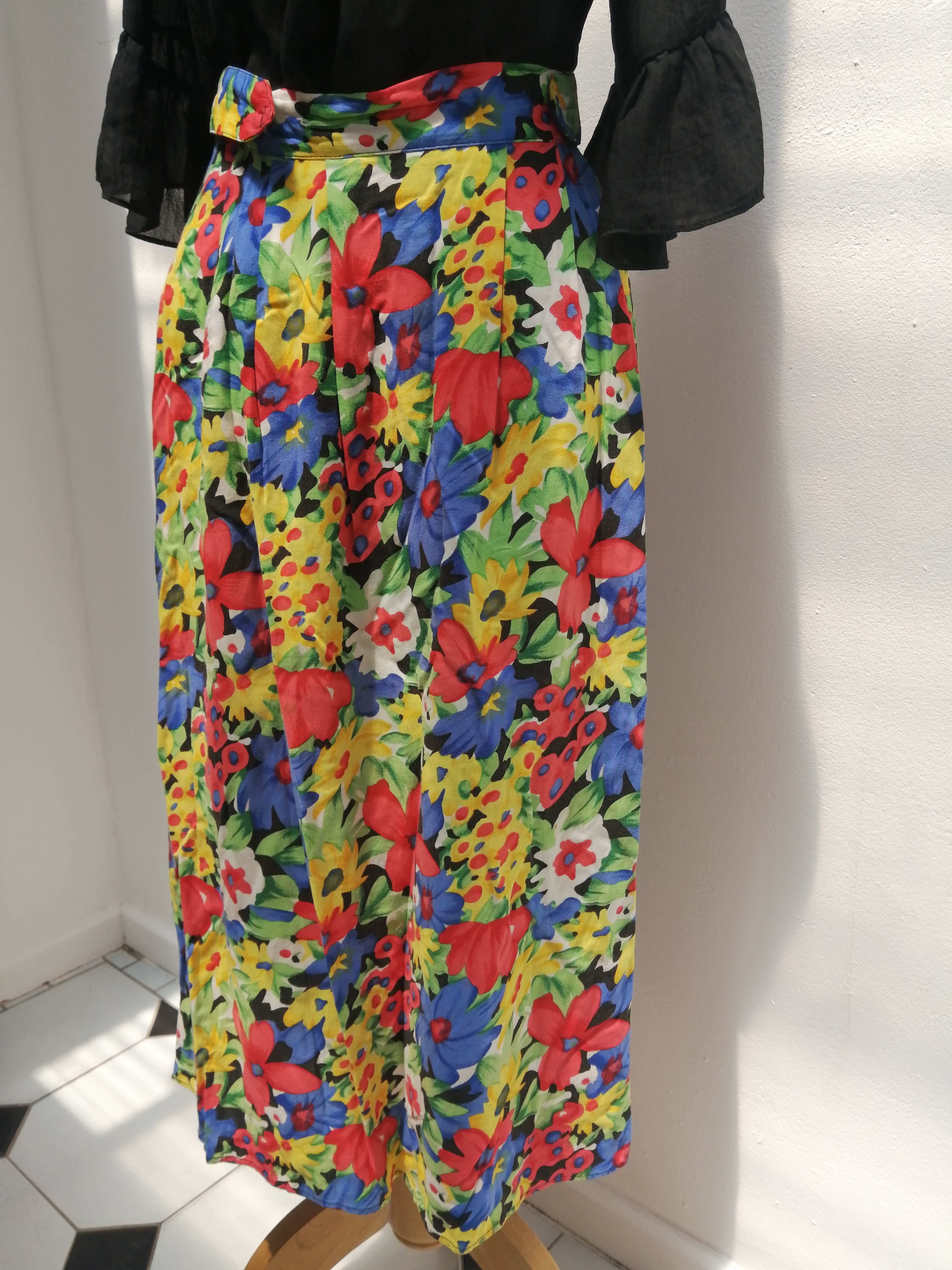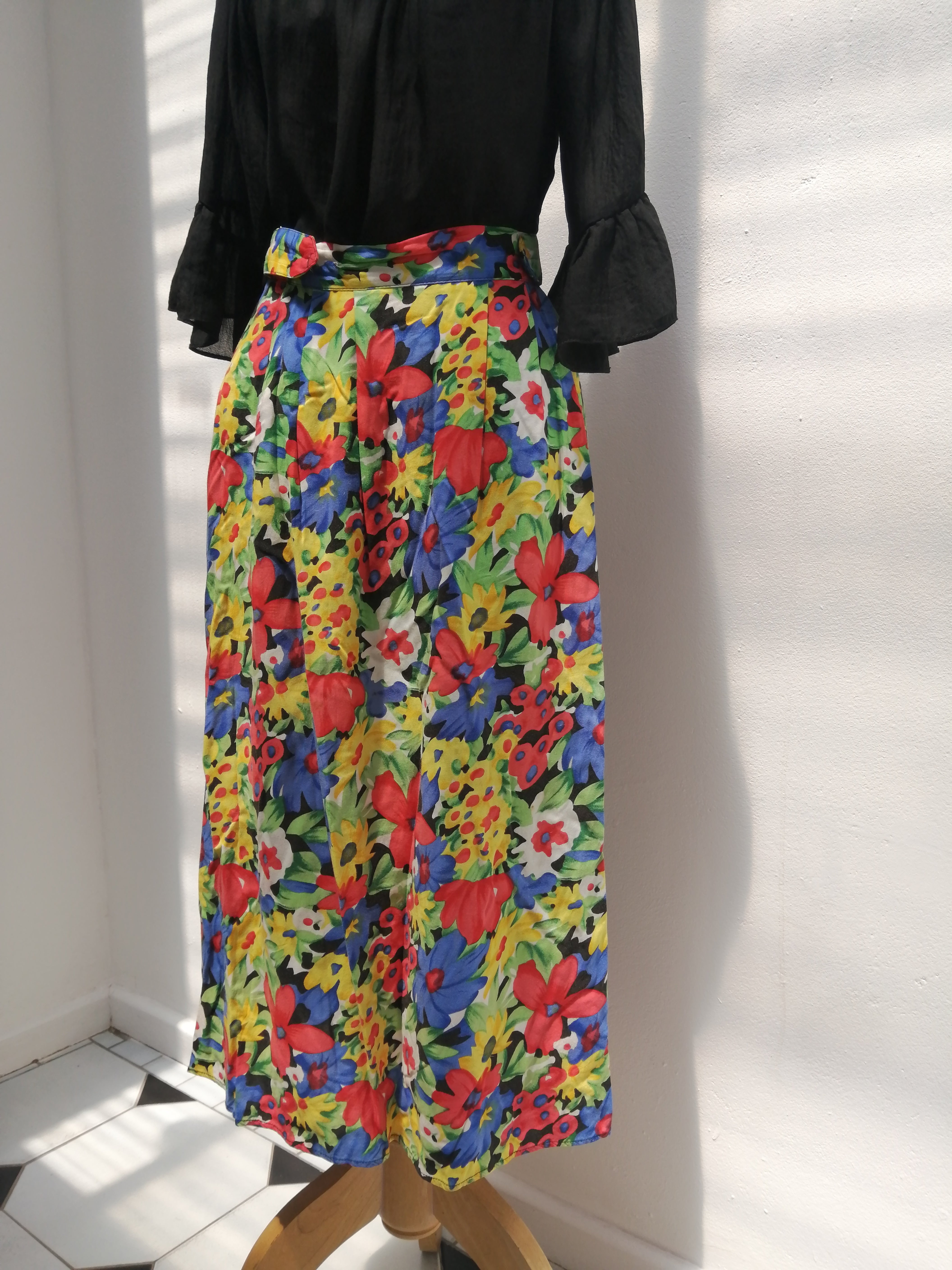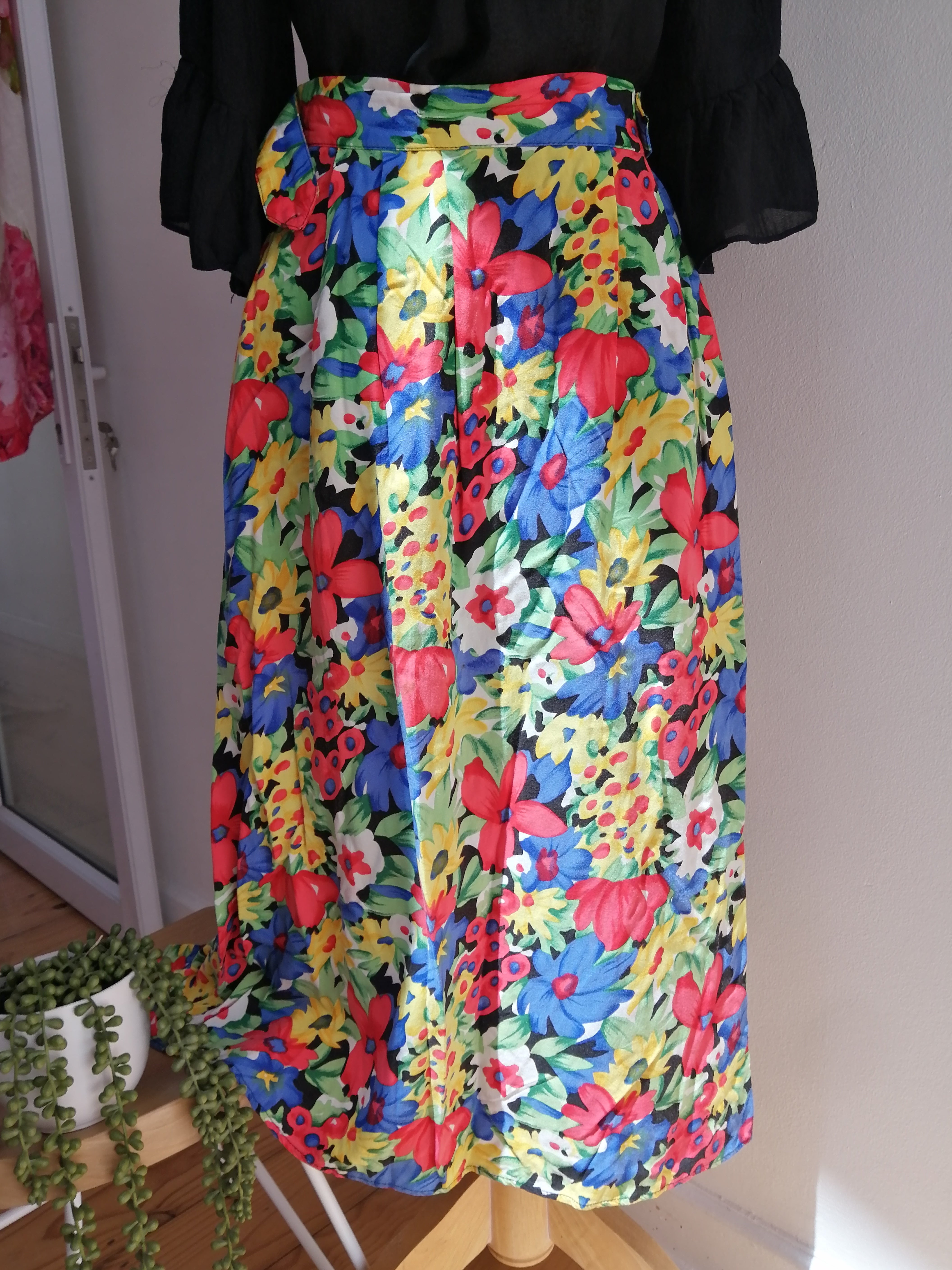 Add a splash of sunshine to your wardrobe with this bright floral skirt. Its lively pattern and vibrant colors bring a cheerful vibe to any outfit, perfect for twirling through sunny days or casual outings.